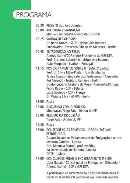 Nota Final: A exemplo das Conferências anteriores do GRI-DPA, também esta Conferência será documentada com todas as intervenções proferidas pelas/os palestrantes convidadas/os,